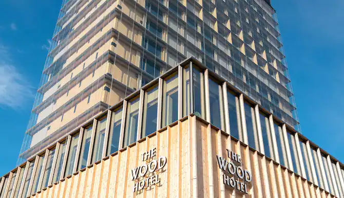 The Wood Hotel av Elite Hotels är en av världens högsta träbyggnader i centrala Skellefteå. Hotellet erbjuder allt från trivsamma hotellrum till sviter med separata sovrum i skandinavisk design. Här blandas en minimalistisk stil ihop med norrländska detaljer och material som åldras vackert med tiden. 4 minuters gångavstånd till Skellefteå busstation.