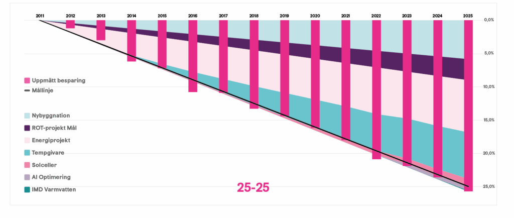 Målet, kallat 25/25, har varit att minska mängden köpt energi med 25 procent mellan 2011 och 2025.