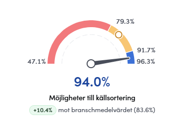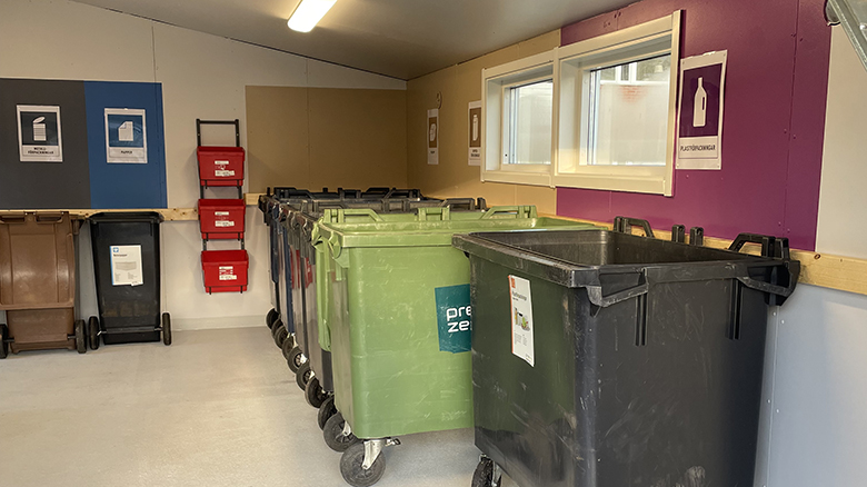 Förutom färgmarkeringarna har bostadsbolaget även separerat mat- och restavfall från övriga källsorteringen i många av sina miljörum.